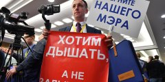 «Жить опасно»: плакаты журналистов на пресс-конференции Владимира Путина