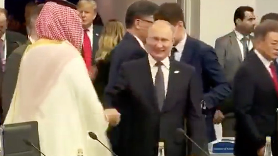 На полях саммита «Большой двадцатки» Путин и бен Салман неформально поприветствовали друг друга, ударив с размаху по рукам.