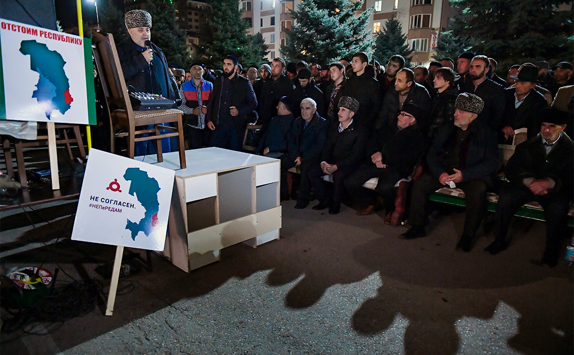 C 4 октября в Магасе проходит акция протеста, организованная противниками установления административной границы с Чечней. Власти Ингушетии 6 октября разрешили провести протестную акцию в Магасе с 8 по 17 октября. Протестующие требуют проведения референдума по вопросу о границе и отставки главы республики, который подписал соглашение с Чечней.