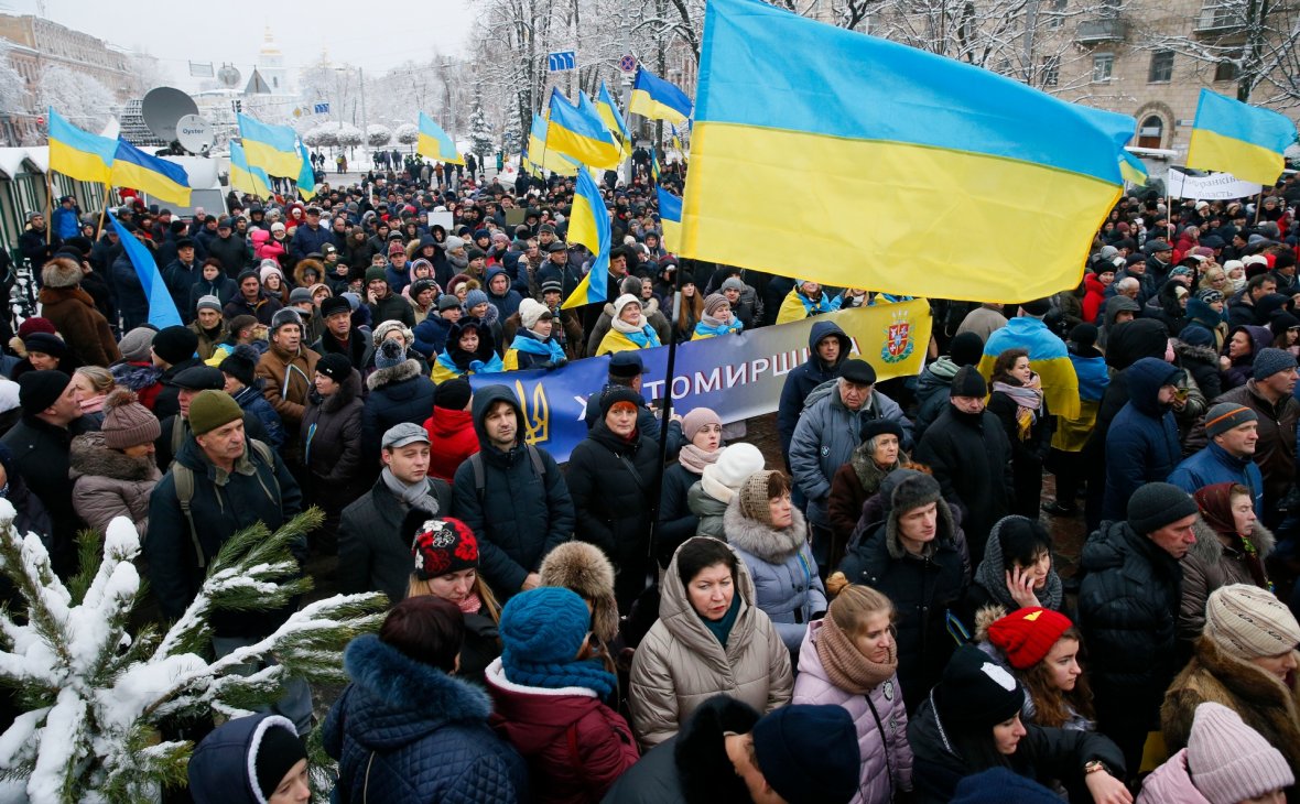 Как передает корреспондент агентства, в Киеве на Софийской площади для молебна в честь объединительного собора собрались тысячи сторонников автокефалии Украинской православной церкви.