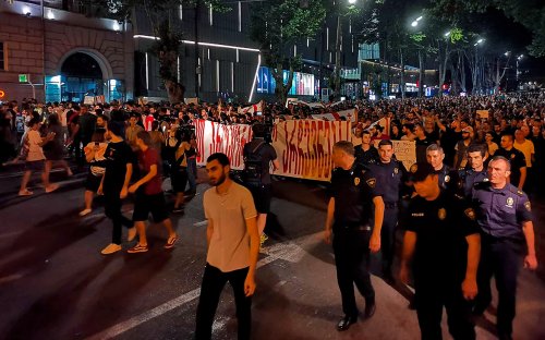 Часть участников протестов при этом использовала антироссийскую риторику, звучали также политические требования — отставка спикера местного парламента Ираклия Кобахидзе и проведение внеочередных парламентских выборов. Полиция разогнала митинг, применив резиновые пули и слезоточивый газ. В беспорядках пострадали более 200 человек.