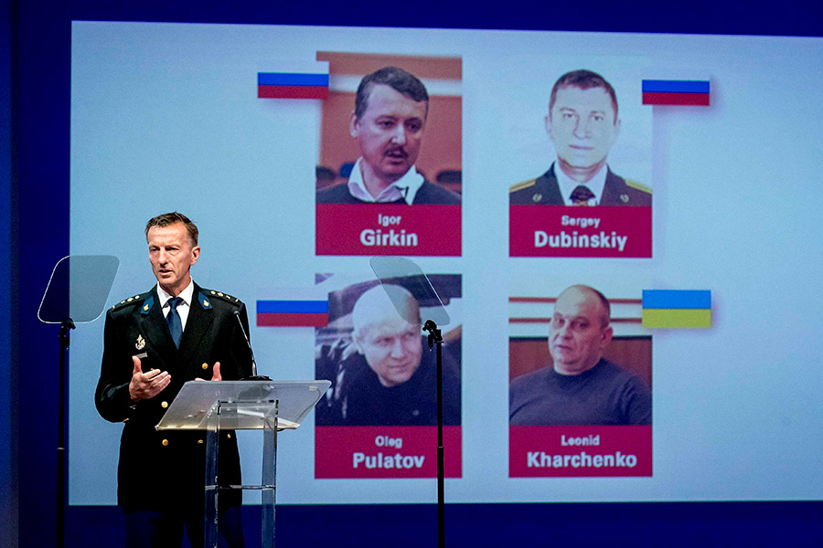 Игорь Гиркин, по данным следственной группы, в момент катастрофы был в прямом контакте с Россией. В качестве доказательства на брифинге были приведены его телефонные переговоры с главой Крыма Сергеем Аксеновым и помощником президента Владиславом Сурковым. По заверению следствия, записи являются подлинными. Гиркин в беседе с РБК отказался комментировать выводы расследователей, ограничившись фразой о том, что «ополчение не сбивало Boeing».
