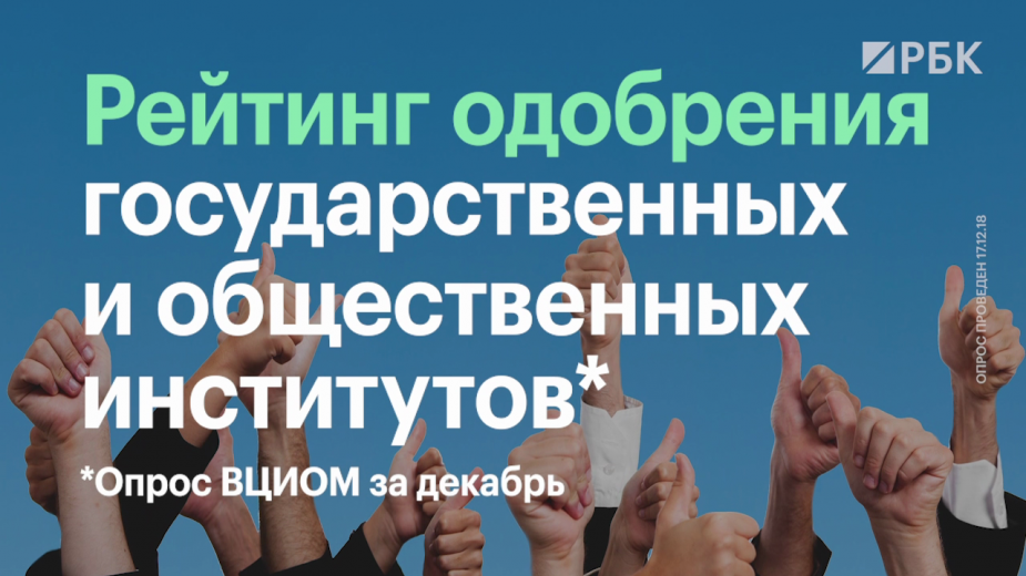 В тройке наиболее положительно оцениваемых россиянами общественных институтов по-прежнему армия (86% респондентов одобряют ее действия, негативно высказываются только 6%), Русская православная церковь (68,8% против 16,4) и правоохранительные органы (57% против 27,4). Таковы данные декабрьского рейтинга одобрения основных государственных и общественных институтов от ВЦИОМа (есть у РБК).