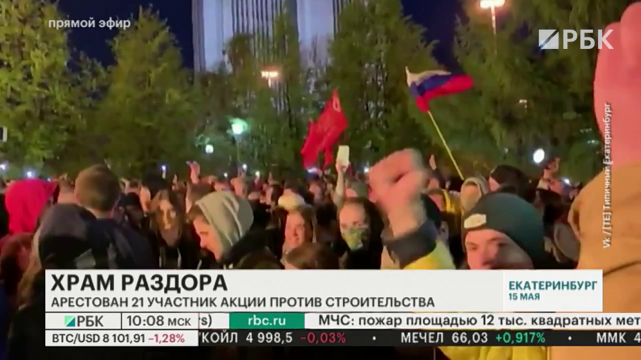 Акции протеста, связанные со строительством храма в сквере у Театра драмы в Екатеринбурге, проходят с понедельника. 14 мая произошли стычки протестующих с бойцами ОМОНа, были задержаны более 20 человек, сообщалось о троих пострадавших. В среду, 15 мая, были задержаны более 30 человек.