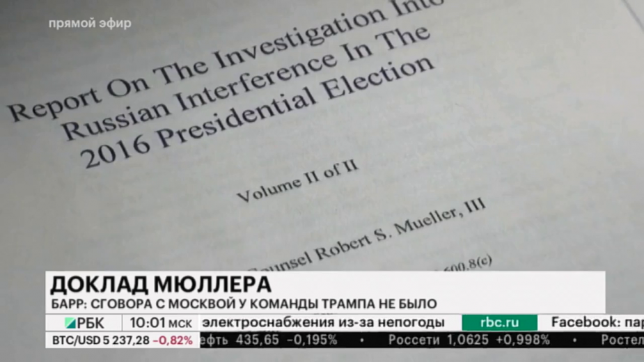 Доклад о вмешательстве России в выборы в США был опубликован 18 апреля. В документе с приложениями больше 400 страниц, однако текст опубликован со значительными купюрами.​