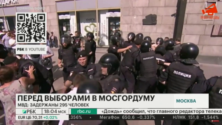 Сотрудники правоохранительных органов вытеснили также участников акции из Камергерского переулка, улиц Кузнецкий Мост и Большая Дмитровка.