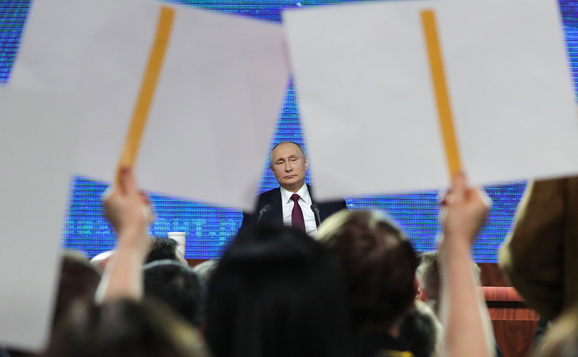 «Жить опасно»: плакаты журналистов на пресс-конференции Владимира Путина