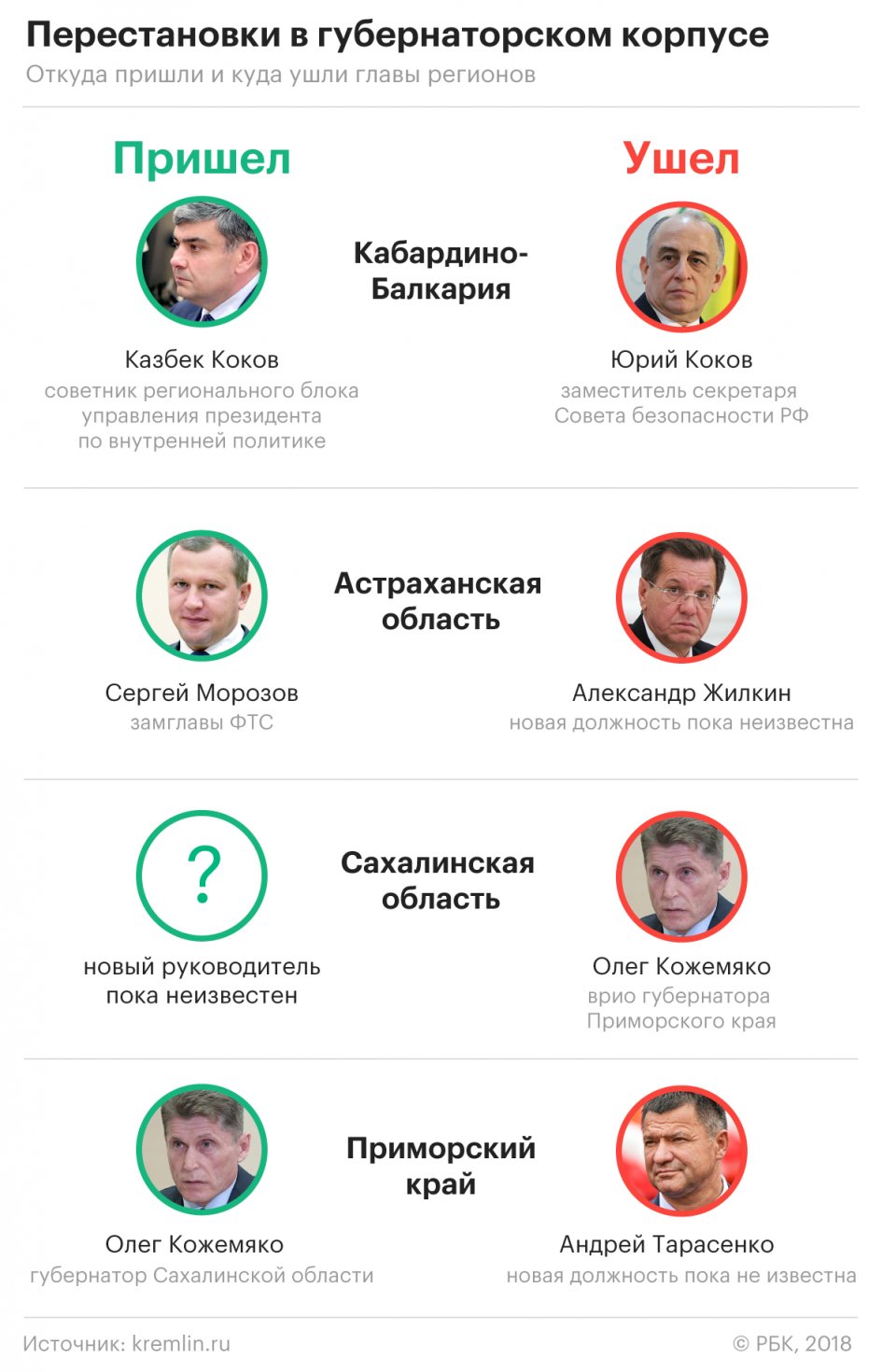 Президент России Владимир Путин предложил возглавить администрацию Кабардино-Балкарии Казбеку Кокову, сыну Валерия Кокова, руководившего республикой в 1992–2005 годах. По стечению обстоятельств нынешний руководитель Кабардино-Балкарии тоже носит фамилию Коков, однако с будущим сменщиком они не родственники.