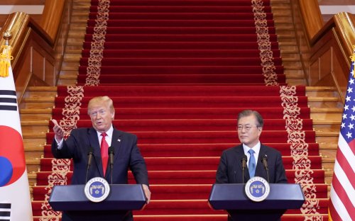 Трамп и Мун Чжэ Ин прибыли в демилитаризованную зону примерно за час до появления лидера Северной Кореи. Президенты осмотрели позиции южнокорейских и американских военных и сделали несколько заявлений для журналистов.
