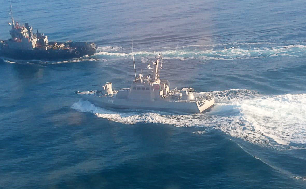 Ранее в ВМС Украины заявили, что российские военные обстреляли три украинских корабля, в результате чего катера «Бердянск» и «Никополь». а также буксир «Яны Калу» потеряли ход и были захвачены спецназом.