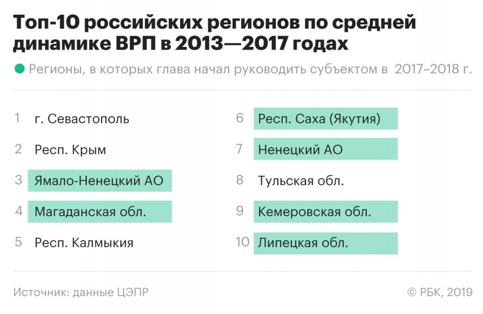 В последней группе («губернаторы-новички») 39 регионов. Для нее авторы доклада пытались «выявить связь между сменой глав в регионах в 2017–2018 годах и динамикой основных показателей социально-экономического развития в этих регионах в предшествующий период», как пояснил РБК соавтор доклада Николай Миронов. Исследователи отталкивались от гипотезы, что в рейтинге всех 85 регионов за период 2013–2017 годов динамика показателей субъектов, где глава сменился в последние годы, была сравнительно менее благоприятной. Но исследование эту теорию не подтвердило. По показателям всех групп не наблюдается зависимости между сменой главы региона и положением субъекта в рейтинге за предшествующий период.