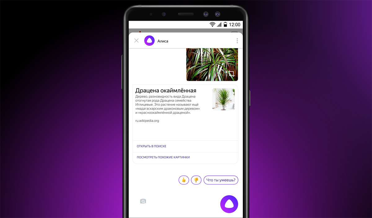 Наш голосовой помощник Алиса научилась распознавать музыку и изображения. Если дать Алисе послушать отрывок песни, она сообщит название и исполнителя, а если показать картинку — скажет, что на ней изображено, и найдёт похожие.