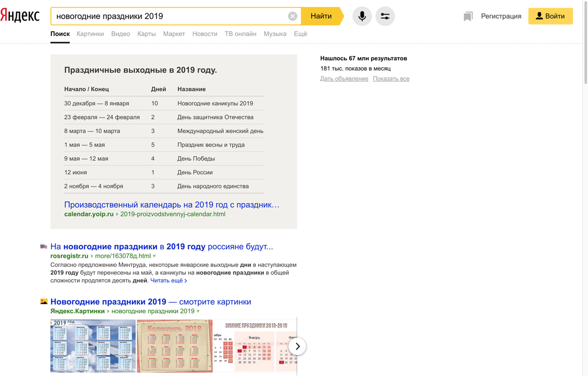 За минувший год спектр вопросов, на которые можно получить такой ответ, сильно расширился. Сейчас Яндекс отвечает фактами на запросы в среднем 13 миллионов раз в день — и каждый шестой факт при этом показывается впервые.