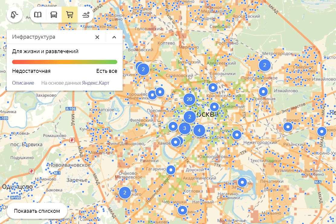 Яндекс.Недвижимость научилась оценивать районы Москвы и Санкт-Петербурга по трём критериям: транспортной доступности, качеству воздуха и наличию инфраструктуры — от детских садов, магазинов и аптек до фитнес-клубов и парикмахерских. Те, кто планирует снять или купить жильё, могут сравнить варианты в разных районах и выбрать самое комфортное для жизни место.