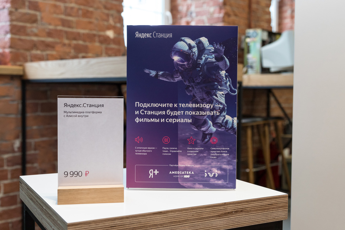 В магазине действует демонстрационная зона. В ней можно рассмотреть Станцию и опробовать её в деле: например, поставить музыку, включить видео или поговорить с голосовым помощником Алисой.