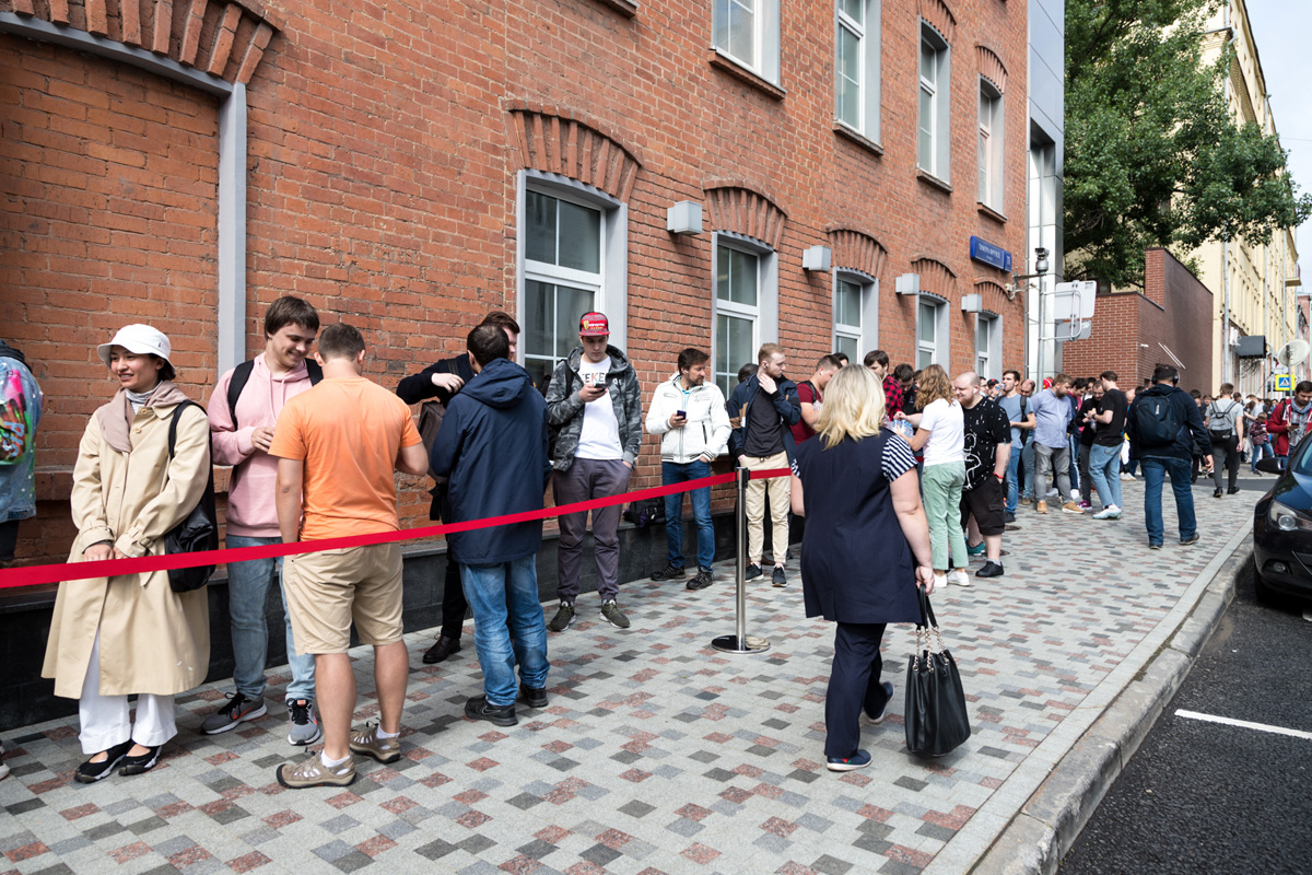 Продажи Станции стартовали 10 июля в 10:00. Первые покупатели появились на месте примерно в полшестого утра. К моменту открытия магазина в очереди на улице Тимура Фрунзе стояли около двухсот человек.