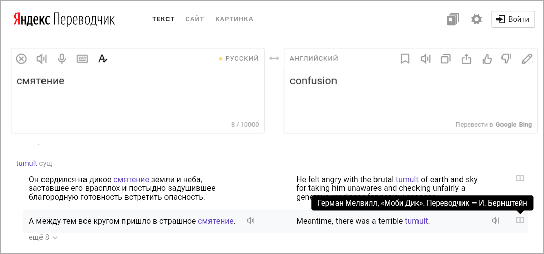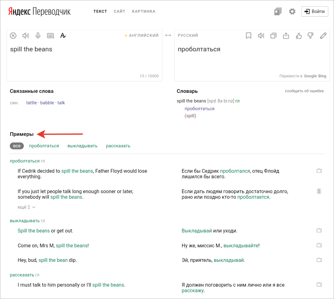 Поэтому теперь Яндекс.Переводчик не только показывает переводы слов и фраз, но и даёт примеры того, как эти слова и фразы используются в разных контекстах.
