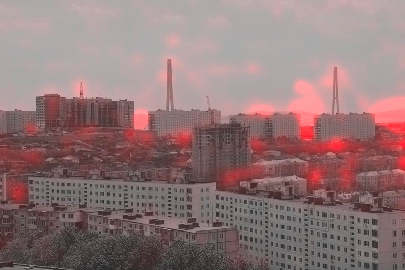 Точно понять, почему нейронная сеть приняла то или иное решение, нельзя — но можно выделить на снимке области, которые сыграли важную роль при вынесении вердикта. На чёрно-белом изображении красным отмечены зоны, которые помогли нейросети определить, что на фото — Владивосток (это правильный ответ).