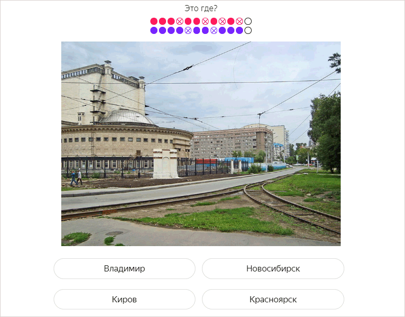 Снимки, которые вы видите в игре, — из Яндекс.Карт; их загрузили пользователи. Мы взяли все фото с Карт, сделанные на территории России, и исключили те, которые были сняты в сельской местности и в небольших городах. Если для города доступно всего две-три фотографии, Алиса не научится распознавать его достоверно.
