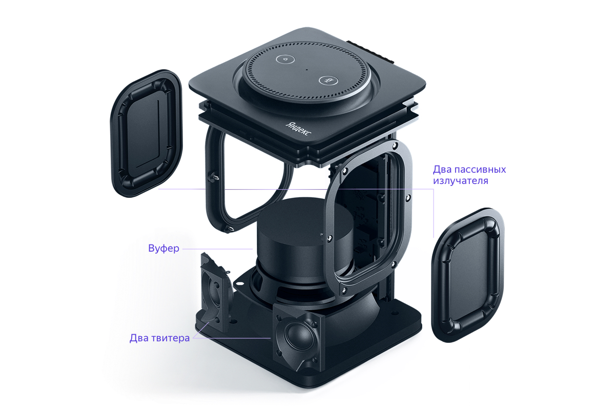 «Сердце» Яндекс.Станции — платформа Yandex IO. Главные составляющие платформы — микрофонная матрица и компьютер (главная плата). Благодаря Yandex IO Станция слышит пользователя даже издалека и в сложных акустических условиях. Подробнее о платформе читайте в блоге Яндекса на «Хабрахабре».